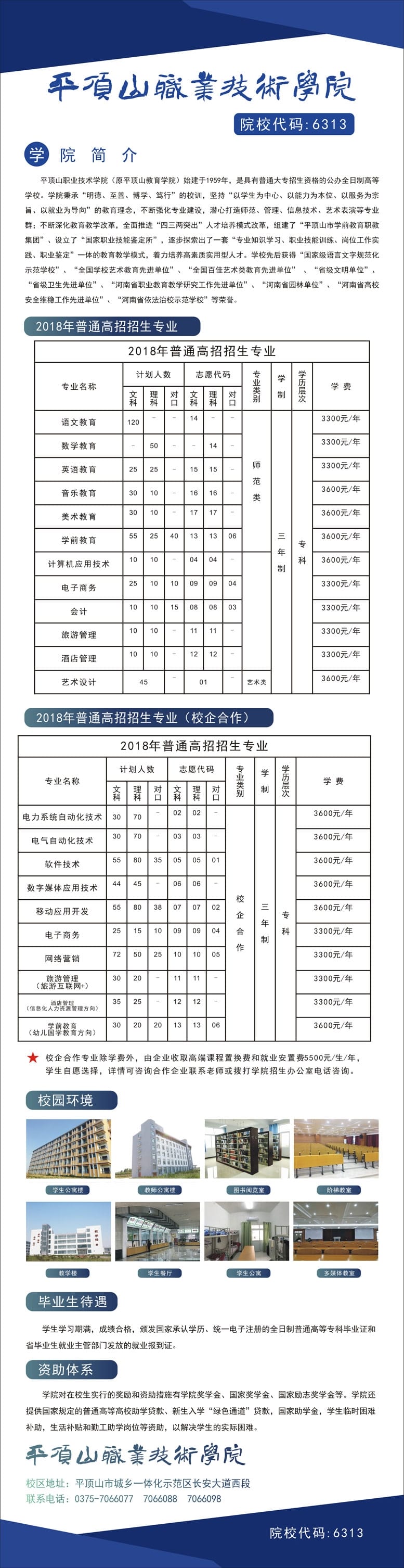 顶山职业技术学院2018年普通高招招生简章
